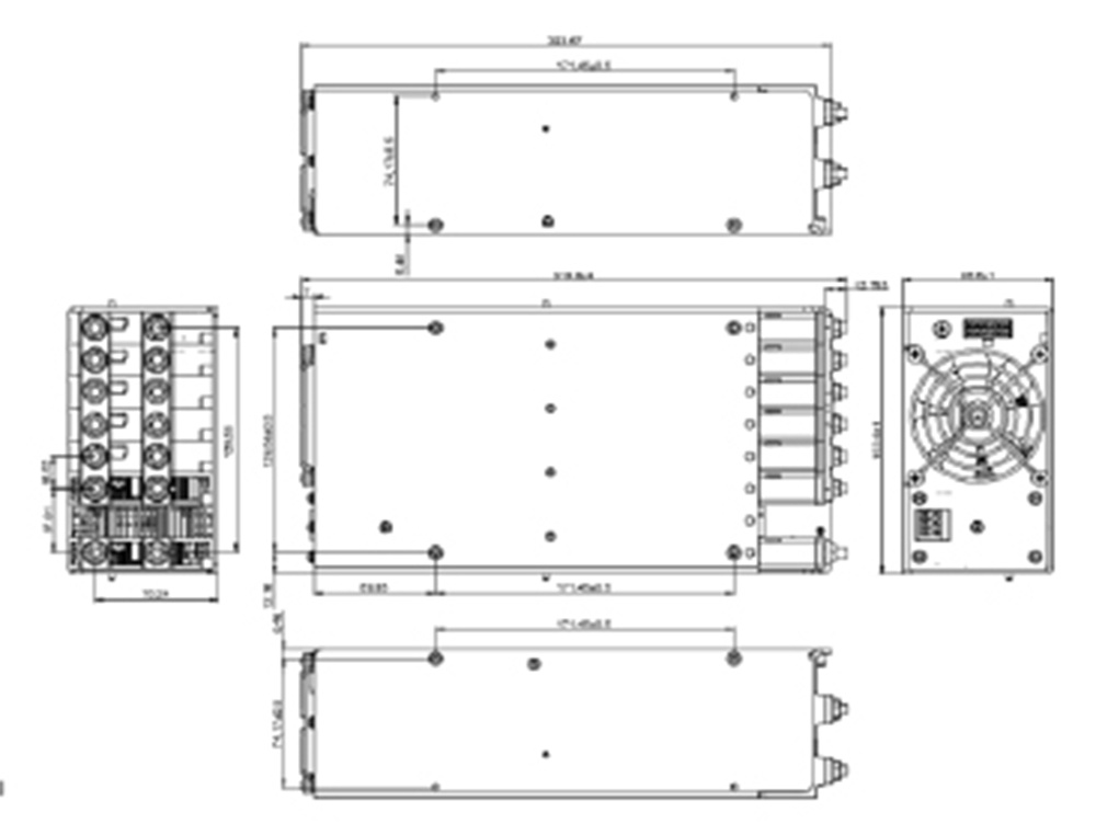 外形尺寸與引出端定義 | ![]() ![]() 外形尺寸 控制端連接器定義 輸入接線端子:1腳為交流輸入L1,2腳為交流輸入L2,3腳為交流輸入安全地線端。 輸出插槽:槽位1~8為輸出功率接口,按不同輸出規(guī)格組合,上輸出銅柱為輸出正,下輸 出銅柱為輸出回線。